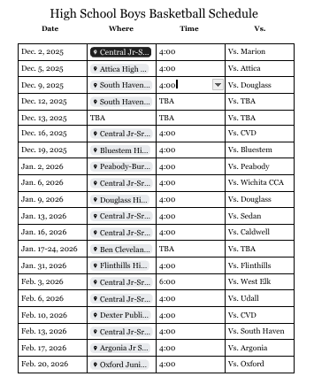 High School Boys Basketball Schedule