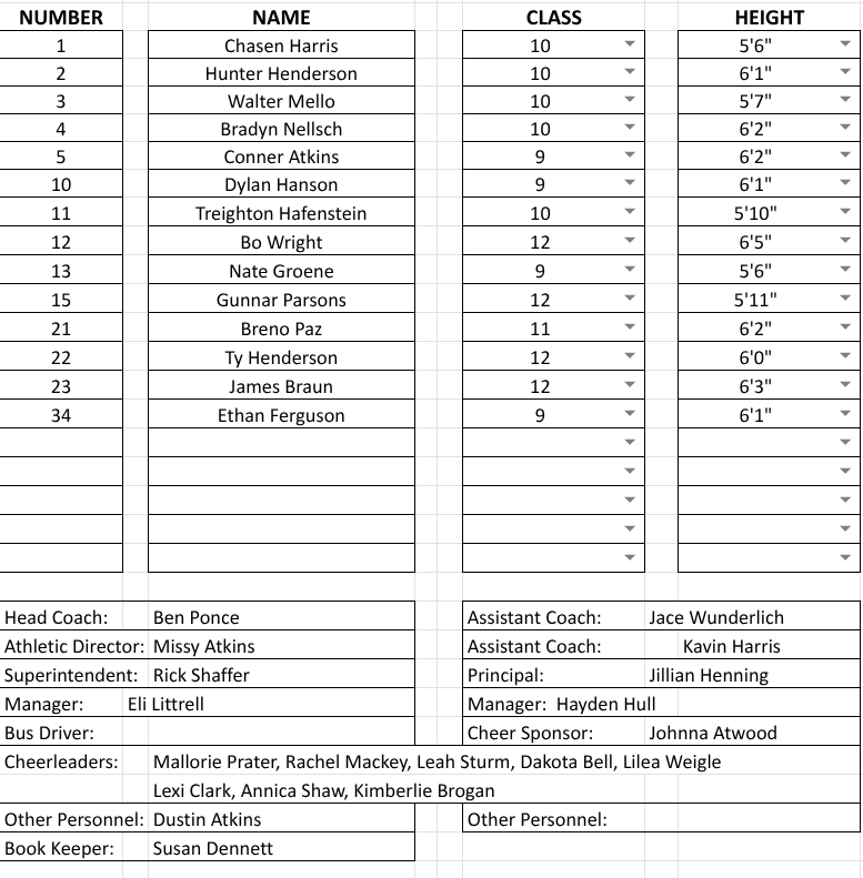 High School Boys Basketball Roster